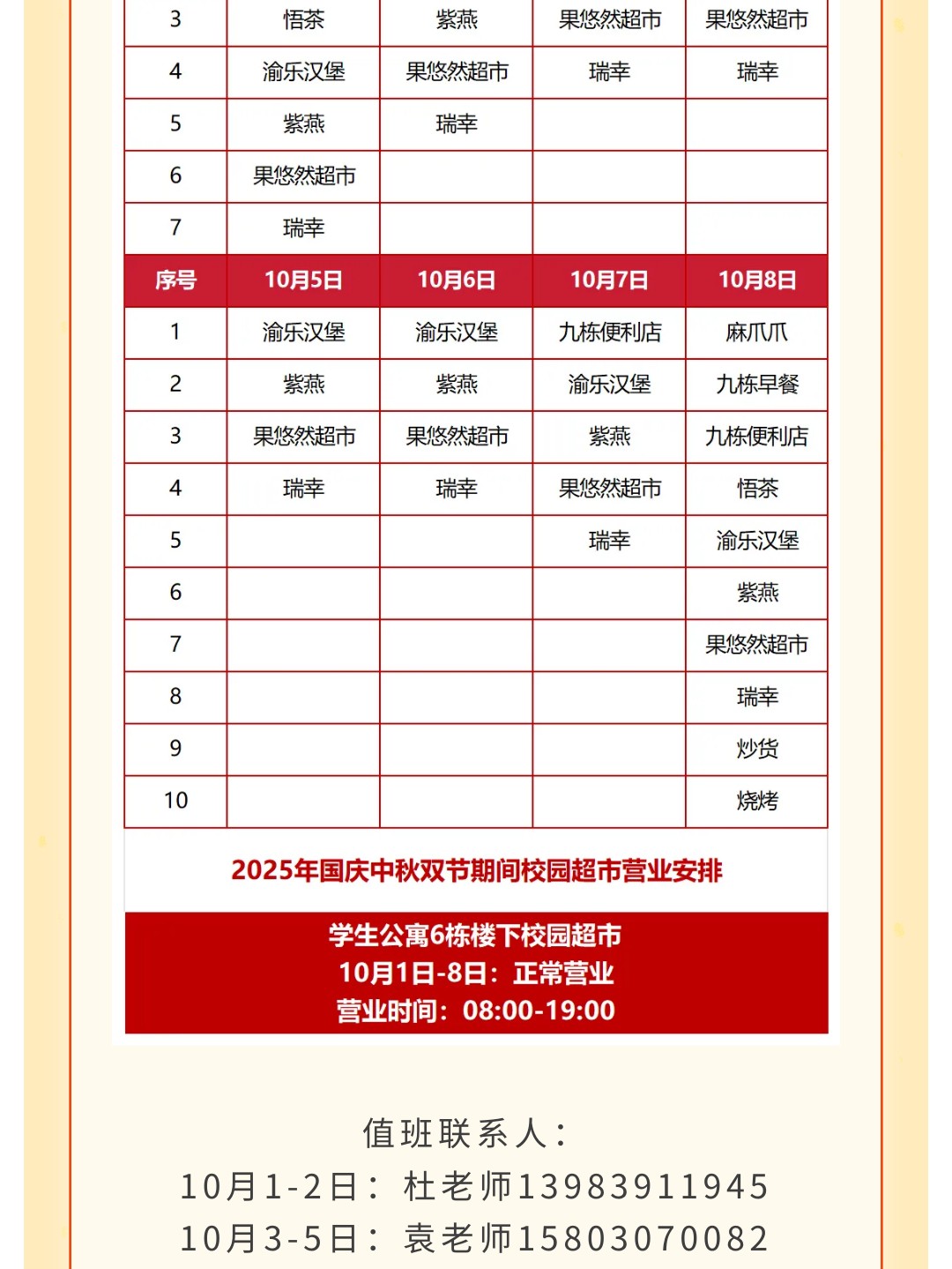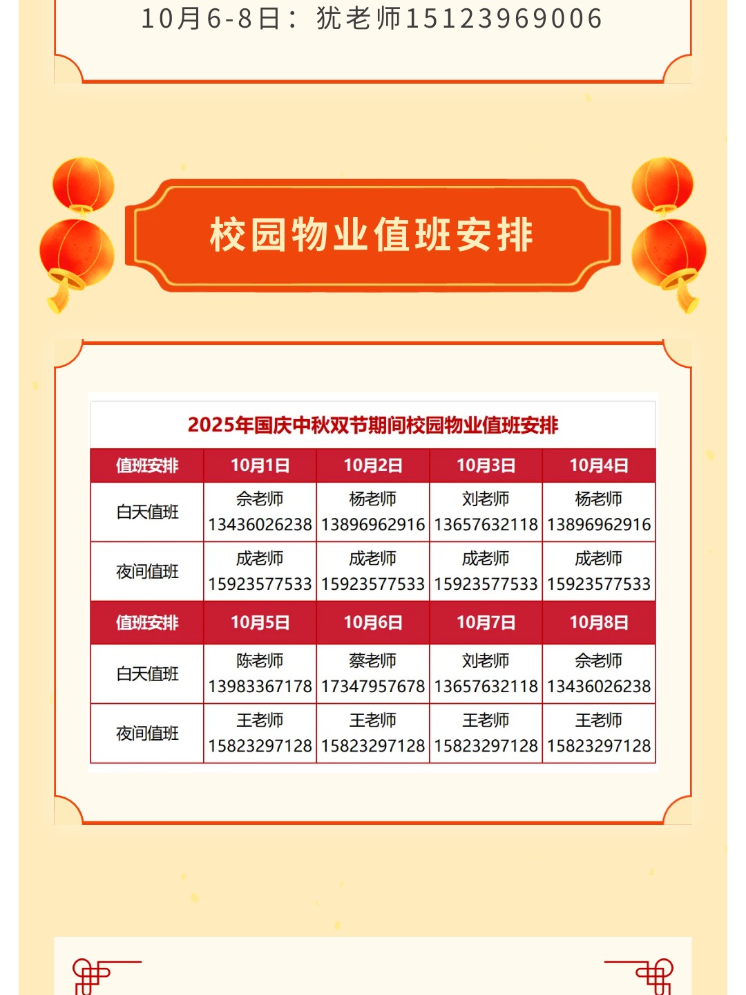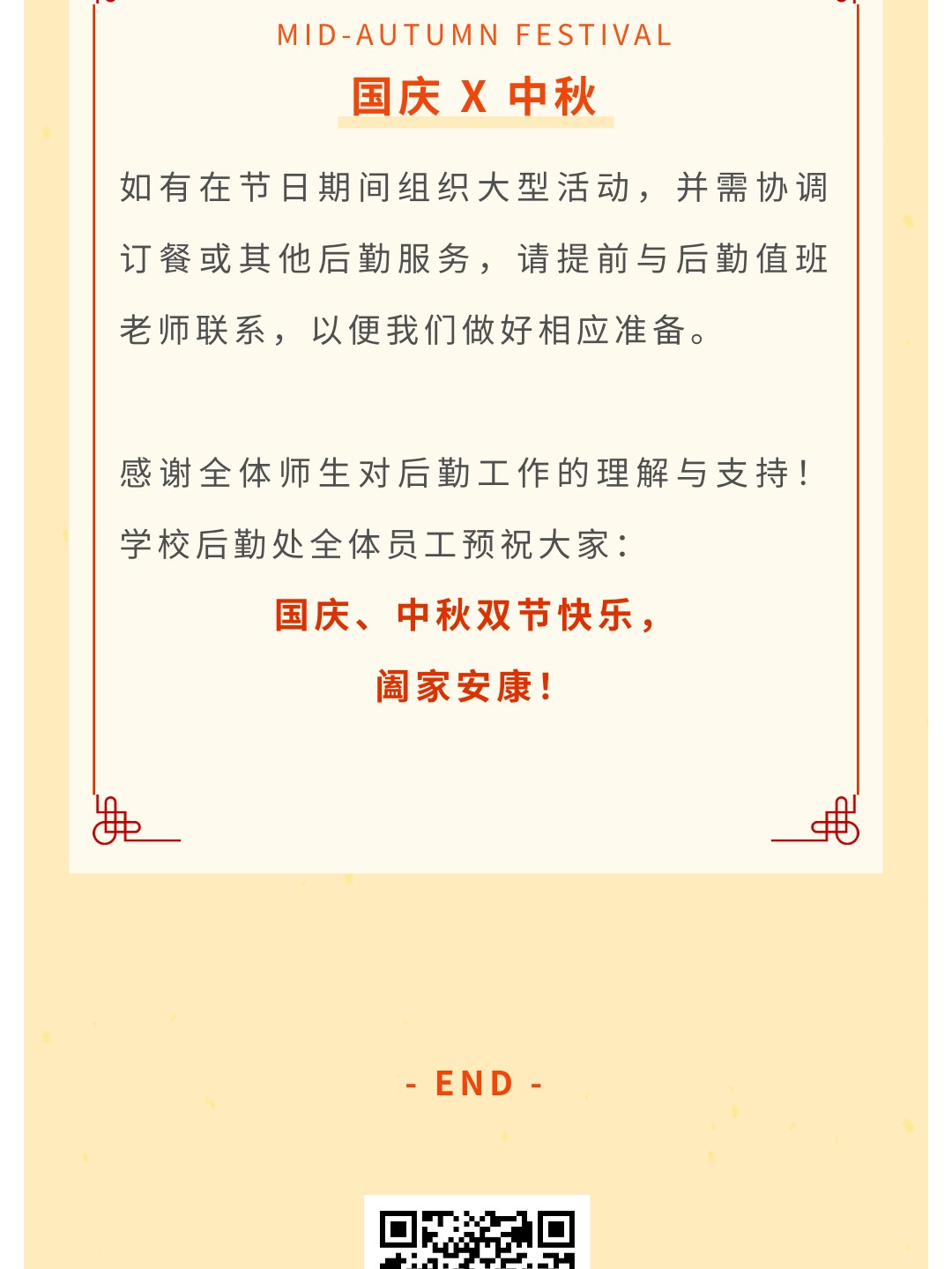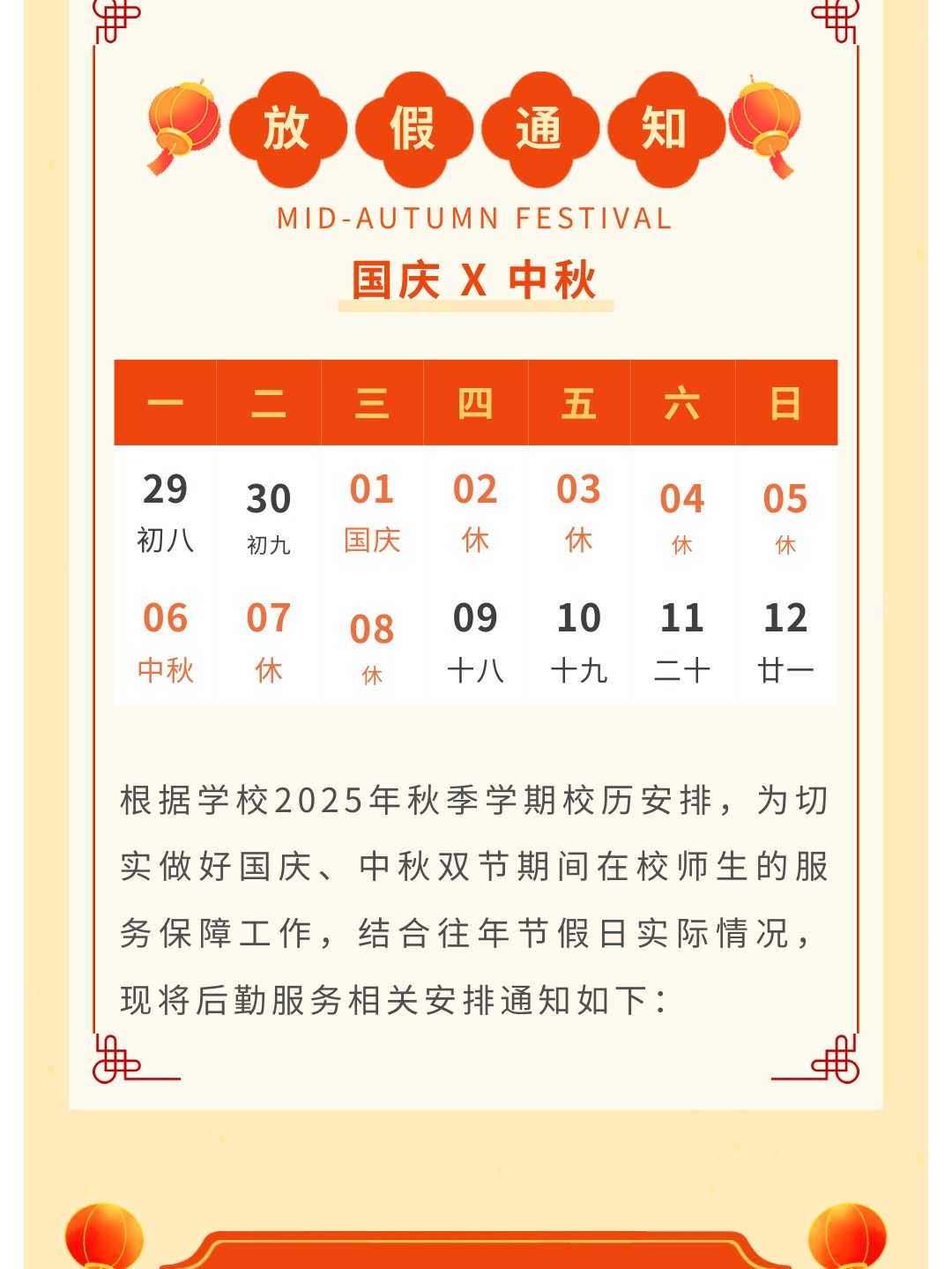 关于2025年国庆中秋双节期间校园后勤保障安排的通知